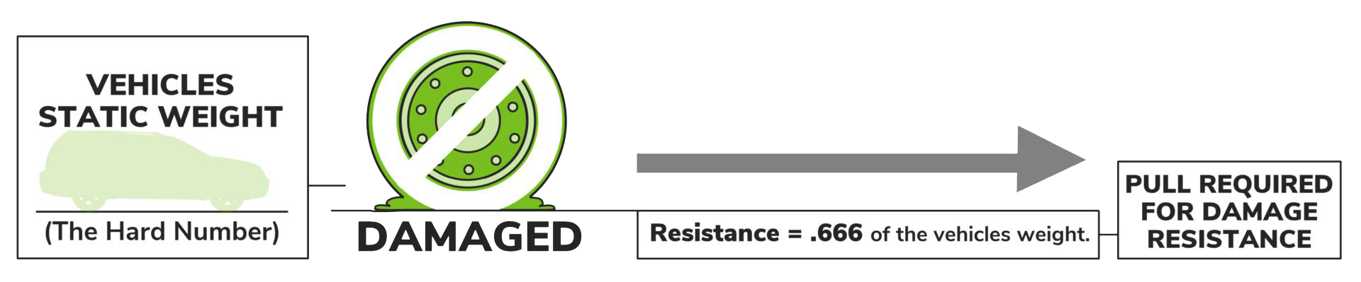 When Rolling or Mire Resistance are not present and does not apply. When the tires and wheels on a vehicle will not turn or rotate (as when the brakes are locked), or the vehicle or load has no tires or wheels at all. This Resistance is generally estimated as up to two-thirds (2/3) or .666 % of the vehicles weight.