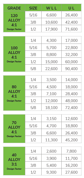 - Grade 7 & Lower Grades are not recommended for OVERHEAD LIFTING.