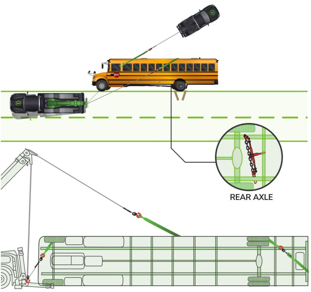 The control vehicle should be placed at a 45 degree angle from the front of the straight truck. The brakes of the control vehicle can be used if needed to help the straight truck from sliding forward before it find the ‘sweet spot’ to lift up.