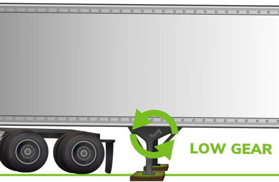 Lower the trailer’s legs until the are resting on the cribbing hardwood again. Use the crank handle in low gear and crank the legs downward until there is sufficient weight on the trailer’s legs. Leave the crank handle in low gear.